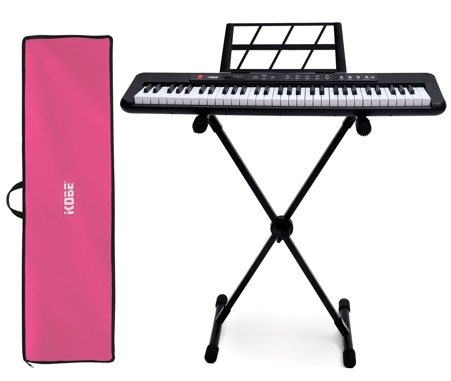 Kit Teclado Musical Kobe KB-150 BK Preto 5/8 61 Teclas Completo Rosa